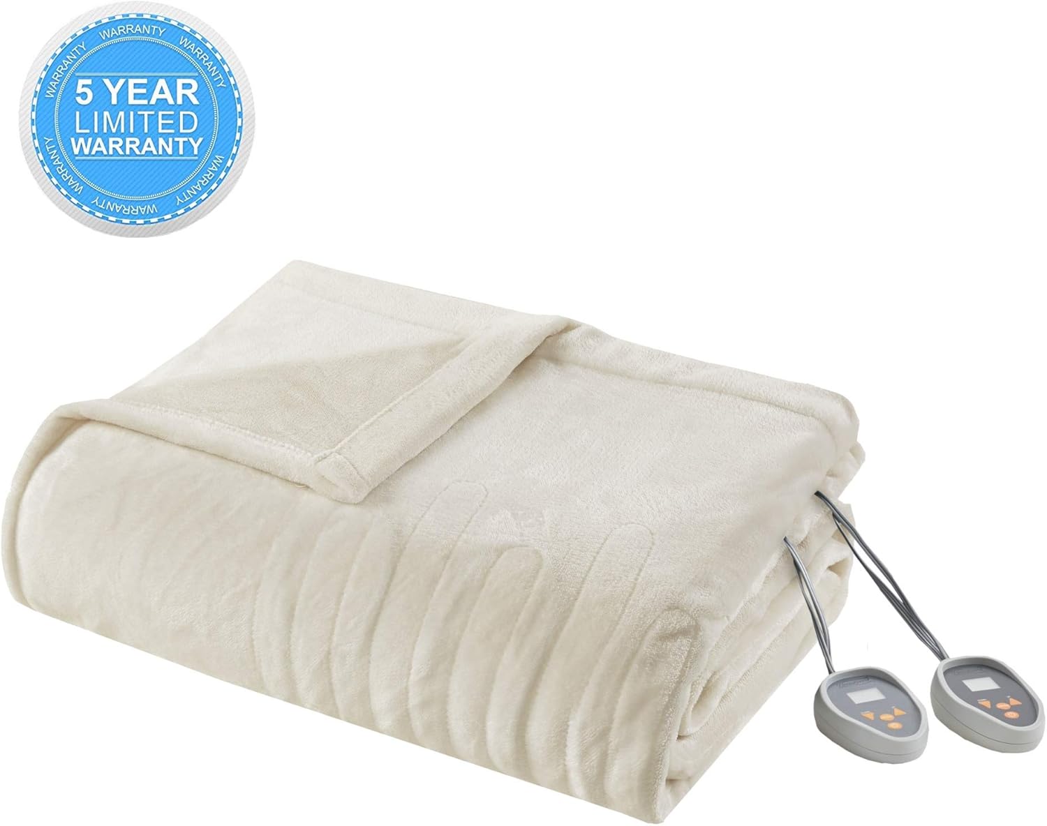 if you are looking for an electric blanket for your king-sized bed that has a long cord and you can place the controller on your bedside table, then this electric blanket should be your choice. As the name suggests, the motive of the company is to provide its customers with pure warmth. The ultra-thin wires are highly comfortable and prevent you from the bulkiness of the blanket. These wires also play a role in even heat distribution and providing therapeutic warmth for freezing nights. The adjustable heat settings provide ten levels and allow you to choose from this range. The electric blanket is approve by UL or ETK Intertek, which leaves no doubt about the highest quality and safety measures. The auto-shutoff feature also enhances safety standards. With the long cord, it is recommend not to use any extension cord or power strip. This blanket is machine-washable and dryer-safe. Also, it is best if you remove the controllers before washing. A five-year warranty is also offered by Pure Warmth.